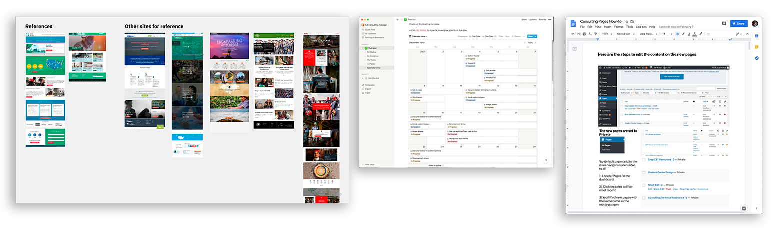 After the initial meeting, I spent a few days gathering all the necessary information on the project. Firstly just familiarizing with the site and taking inventory notes on everything I could including site architecture, how the site is built, access privileges to any analytics, and road blocks. I also put together image and reference boards and documented everything I found. This stage is crucial as it's important to have a good foundational understanding as well as documenting while working rather than forming a report after. I think it is also imperative to have a solid collection of information and data to give accurate timeline at the start.