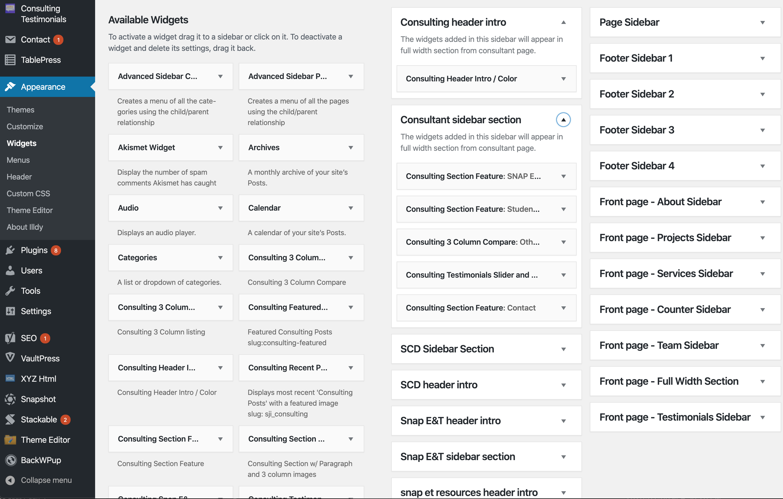 With the widgets in place, I ran through each page redesign and put together each block adding the content that was already written and providing placeholder text in sections that would serve the new content as it arrived.